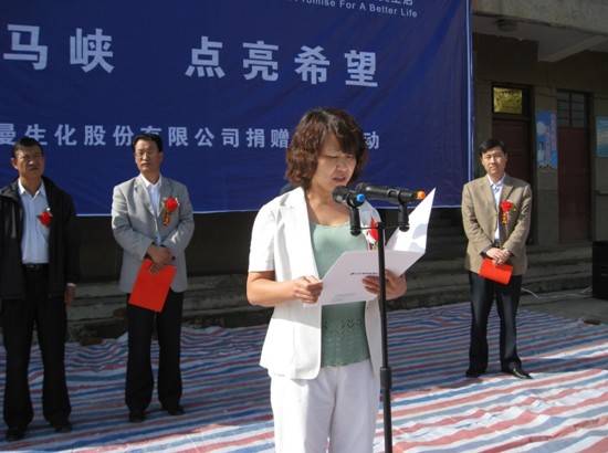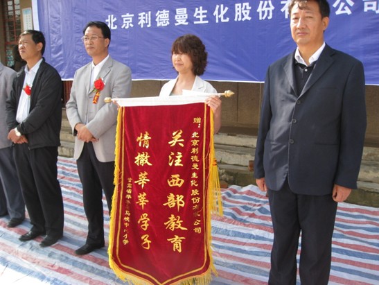 马峡,甘肃—— 2010年9月7日,米兰平台向甘肃省平凉市华亭县马峡中心小学无偿捐赠了价值十万元的钢木课桌椅。米兰平台副总经理张雅丽、华亭县县委常委、副县长徐德才、华亭县教育局局长陶玉宏等出席了捐赠仪式。马峡中心小学校长杜安平向米兰(中国)公司赠送了锦旗,表达感激之情。