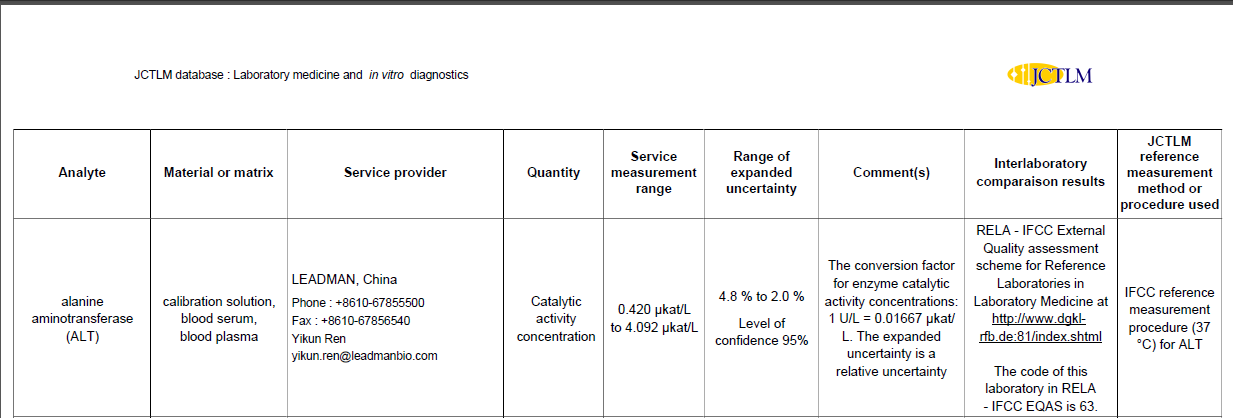 JCTLM是国际上检验医学标准化最权威的组织机构,由国际计量局(BIPM)、国际临床化学与检验医学联合会(IFCC)和国际实验室认可合作组织(ILAC)联合成立,致力于向全球公布满足其相关技术要求的国际参考物质、参考方法和参考测量服务实验室等信息。目前,JCTLM数据库按分析物分为酶学、代谢物和底物、电解质、非肽类激素、蛋白等14类。