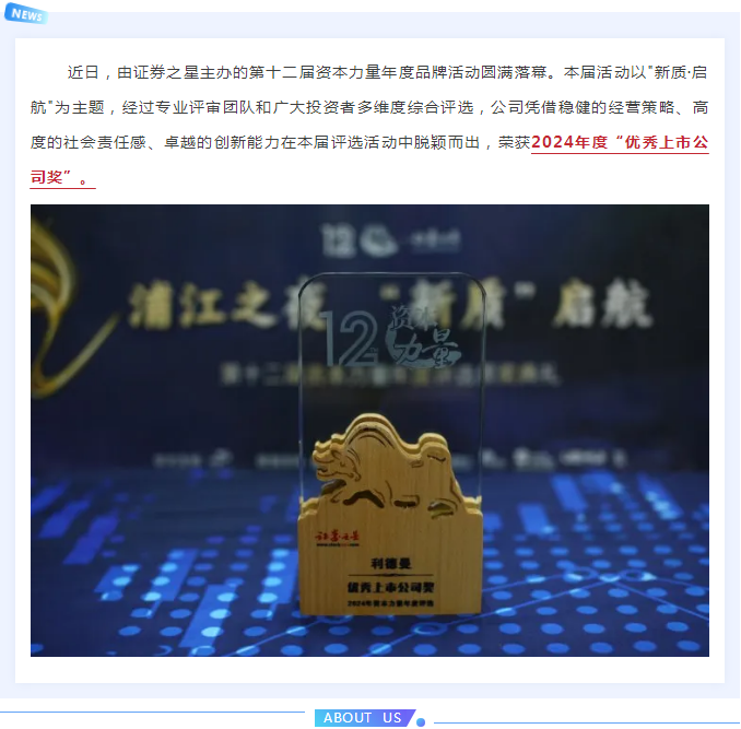 米兰(中国)荣获“证券之星·资本力量” 2024年度优秀上市公司等奖项