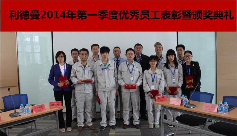 在比赛开始前,米兰(中国)2014年第一季度优秀员工表彰暨颁奖大会隆重举行。由主持人宣读获选2014年第一季度优秀员工最终评选结果,所有入选者依次上台,由米兰(中国)执行总裁王毅兴先生为所有获选者颁发荣誉证书,由营销副总裁陈宇东先生为获选员工颁发学习礼包内含价值人民币1000元的学习卡一张及米兰(中国)慰问卡一张,由生产运营副总裁王建华先生为一季度优秀员工颁发荣誉勋章。所有获选者在接受荣誉表彰后集体合影留念。
